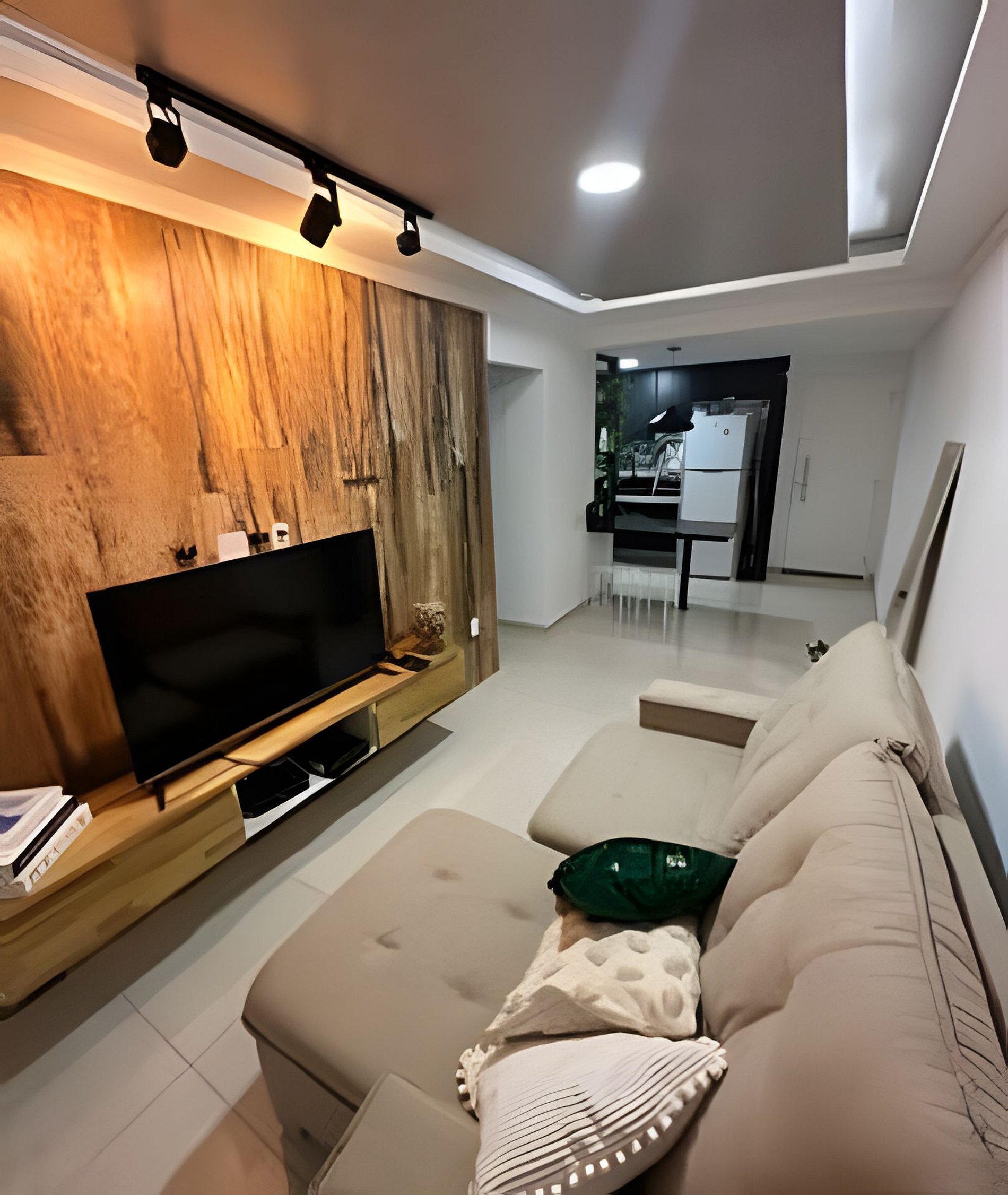 furnished one-bedroom apartment that holds 3 adults or 2 adults and one child; Delicate and airy. The property offers an ideally-sized balcony, living room with retractable sofa, smart TV and pay channel, full kitchen; bedroom with double bed and television also with pay channel independent of the living room television; clean bathroom, walk-in shower with blindex and well lit; Perfect for those who want to be with family or friends and feel at home, three blocks from the beach.