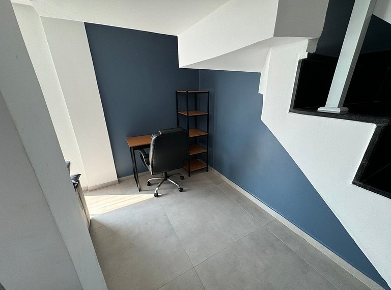 Ambiente amplo, conceito clean e estetica aconchegando, esse duplex trará a sensação de paz e comodidade. O imóvel é contemplado por amplo espaço gourmet coberto com churrasqueira, Televisão smart e banheiro; ainda no andar de cima, fica a suíte master com cama de casal e bicama, no térreo, temos sala de jantar, sala de estar com sofá retrátil e TV Smart, um banheiro social com chuveiro e mais uma suíte,sendo composta por duas bicamos e o terceiro quarto que é composto para comportar um casal.