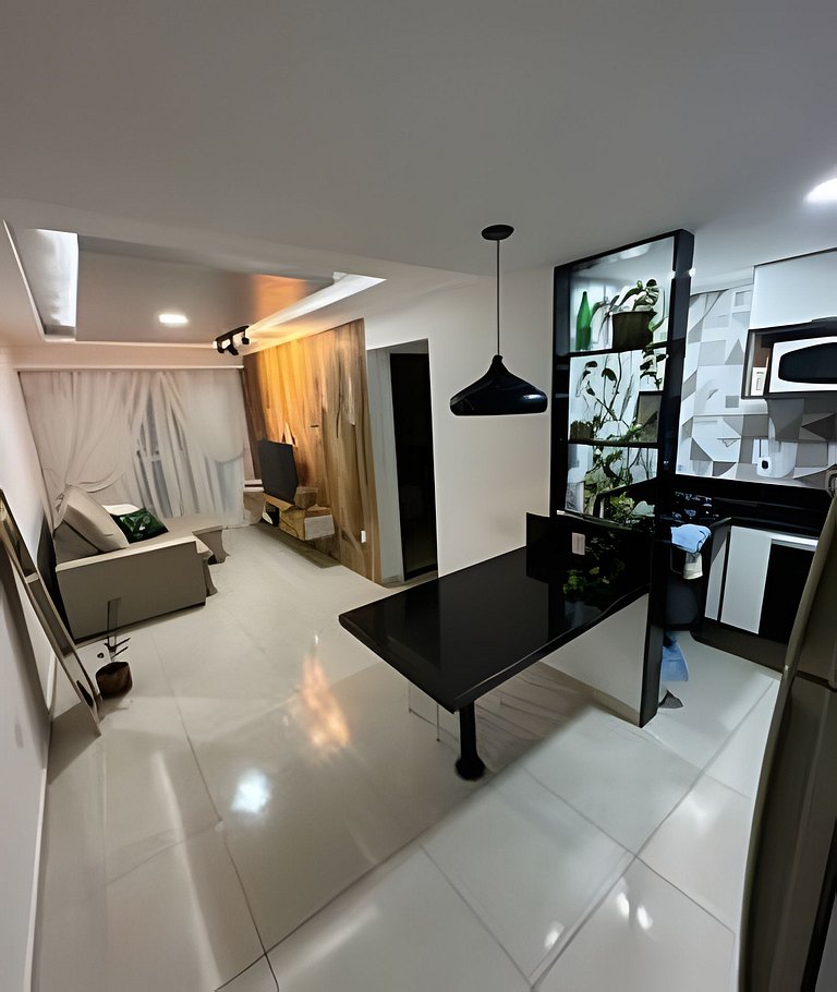 apartamento mobiliado de um dormitório que comporta 3 adultos ou 2 adultos e uma criança; delicado e arejado. O imóvel oferece uma varanda com tamanho ideal, sala com sofá retrátil, televisão smart e canal pago, cozinha completa; quarto com cama de casal e televisão também com canal pago independente da televisão da sala; banheiro clean, box com blindex e bem iluminado; perfeito para quem deseja estar com família ou amigos e se sentir em casa, à três quadras da praia.