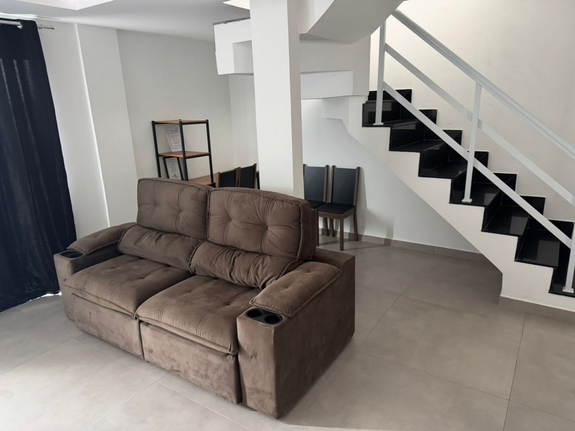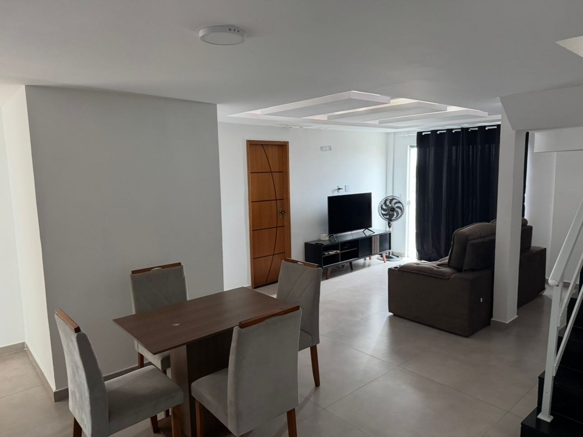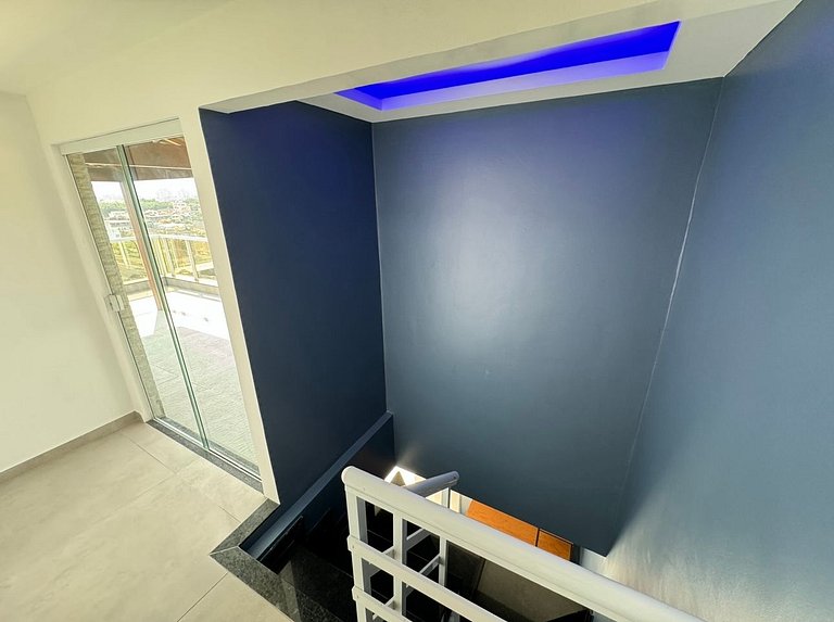 Ambiente amplo, conceito clean e estética, esse duplex traz a sensação de paz e comodidade. O imóvel é contemplado por amplo espaço gourmet coberto com churrasqueira, Televisão smart e banheiro; ainda no andar de cima, fica a suíte master com cama de casal e bicama, no térreo, temos sala de jantar, sala de estar com sofá retrátil e TV Smart, um banheiro social com chuveiro e mais uma suíte,sendo composta por duas bicamos e o terceiro quarto que é composto para comportar um casal.